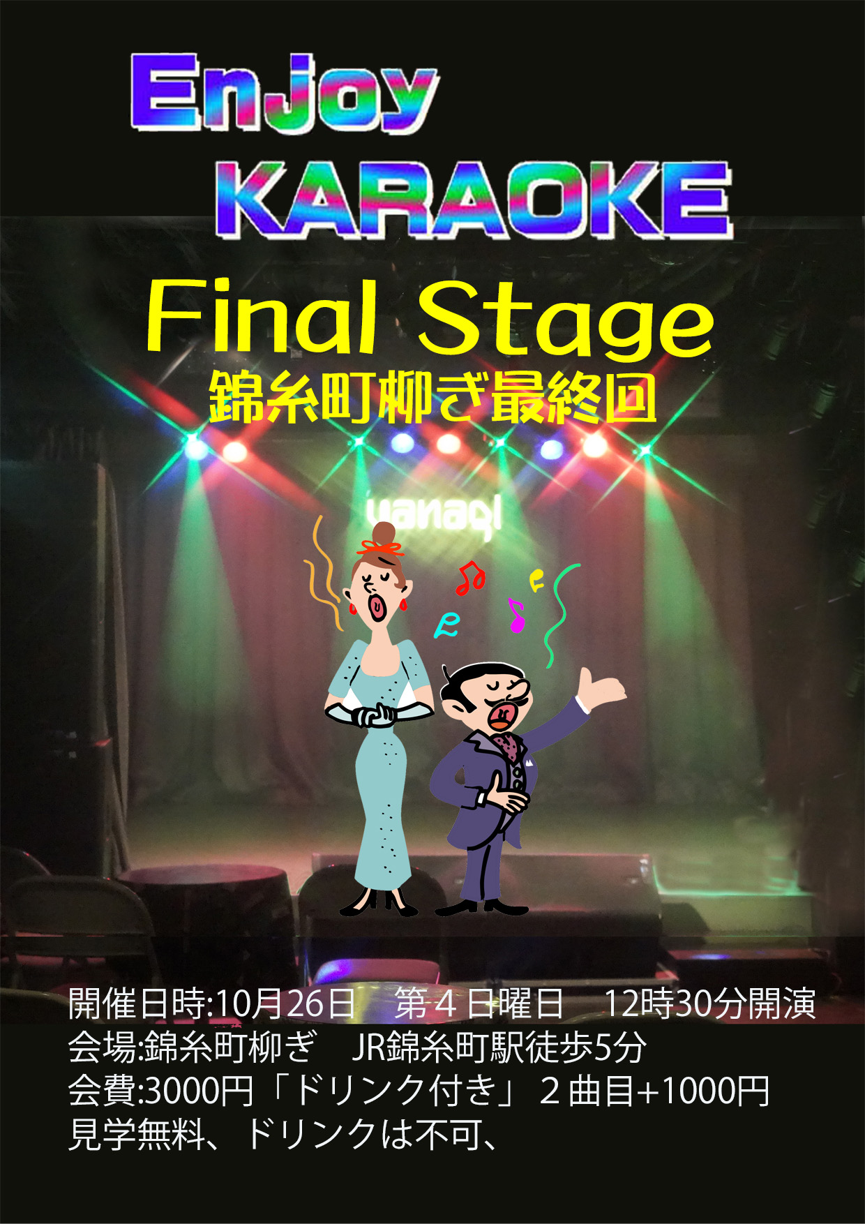 カラオケ喫茶「柳ぎ」は、江戸川区西葛西駅前のお店でカラオケを歌うのが大好きな、歌唱は上手な方、それなりの方々が集うお店です。